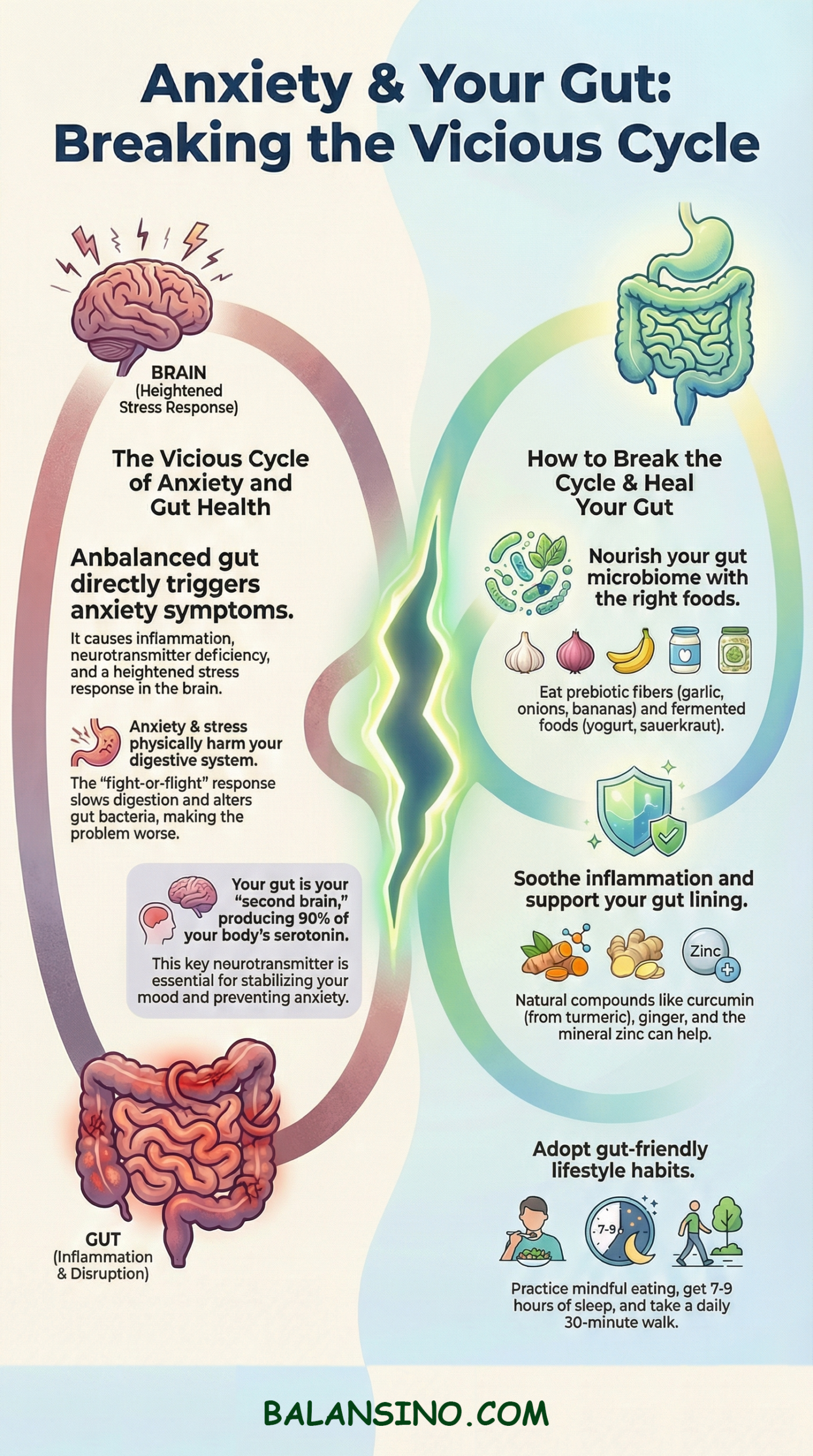 - While managing stress through lifestyle practices is important, natural compounds that support the nervous system provide additional help in breaking the anxiety-gut cycle.