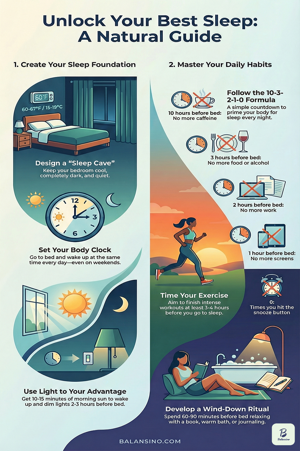 You can’t go from 100 mph to sleep in five minutes. Your body needs a transition period—a wind-down ritual that signals it’s time to rest.